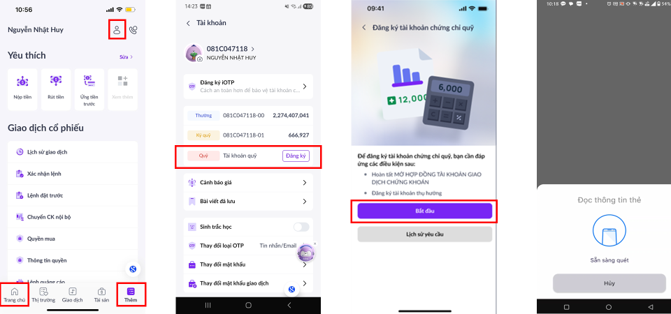 - Bước 1: Tại màn hình [Trang chủ], chọn nút biểu tượng tài khoản