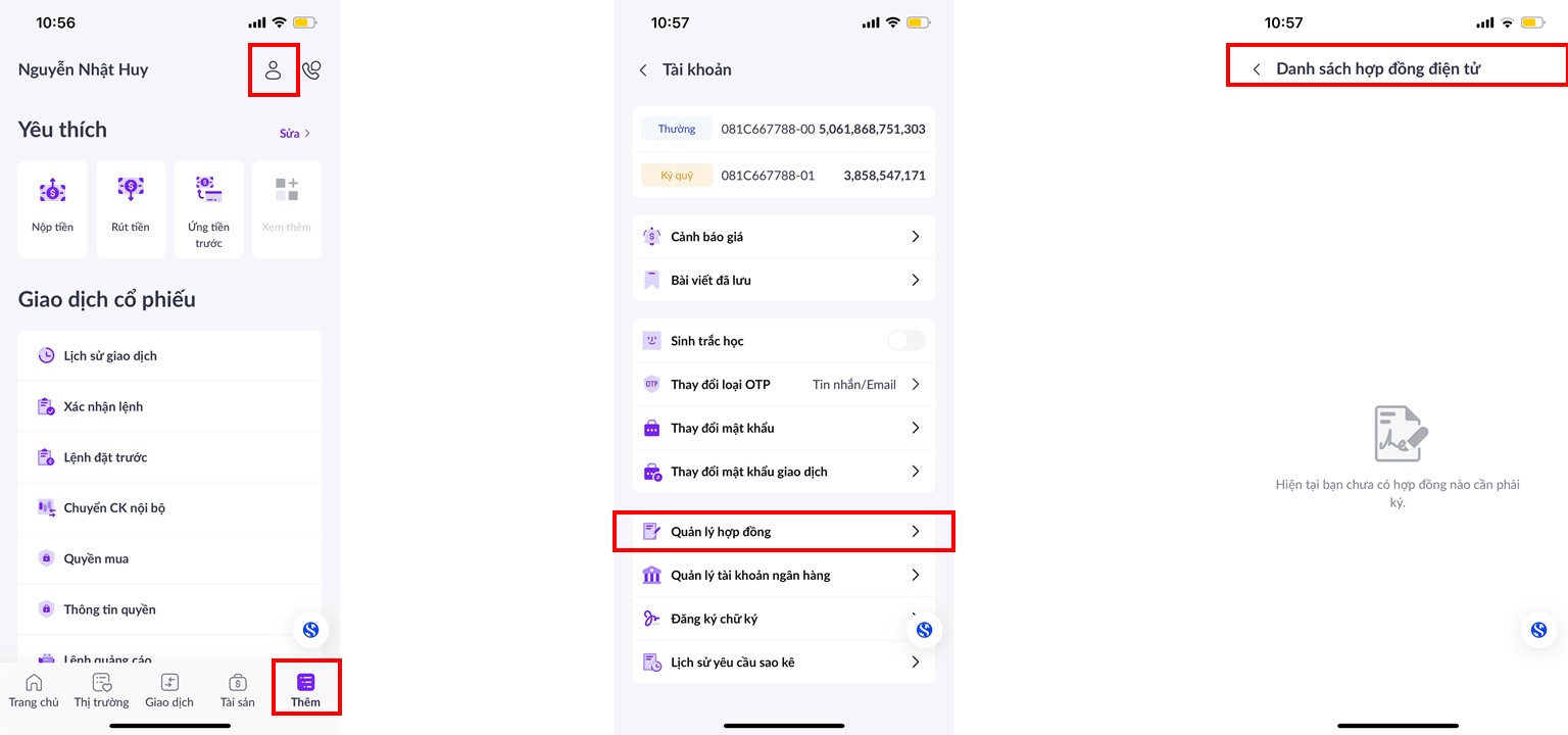 - Bước 3: Kiểm tra tình trạng của hợp đồng hoặc ấn vào hợp đồng điện tử và thực hiện ký kết