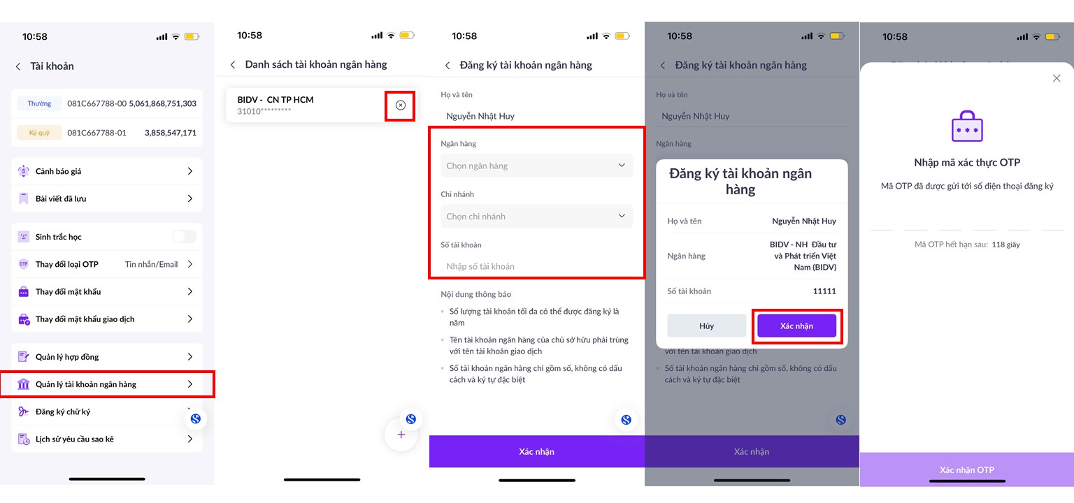 - Bước 5: Thực hiện kiểm tra thông tin và nhập mã OTP để xác nhận thông tin