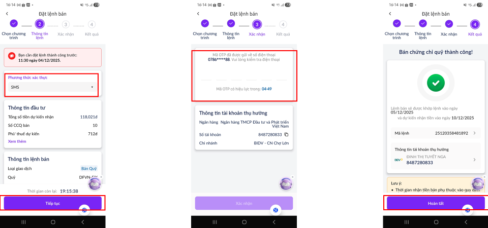 - Bước 5: Chọn phương thức xác nhận lệnh và chọn [Tiếp tục].