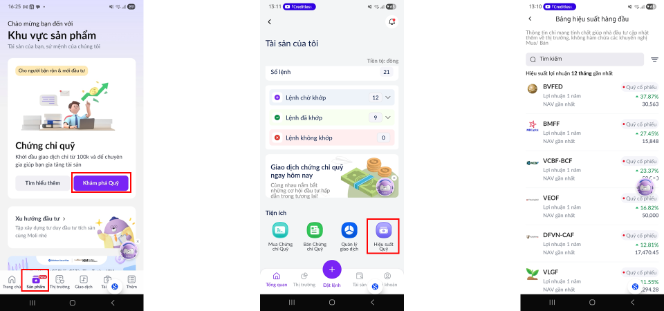 - Bước 2: Tại mục [Tổng quan], chọn mục [Hiệu suất Quỹ].