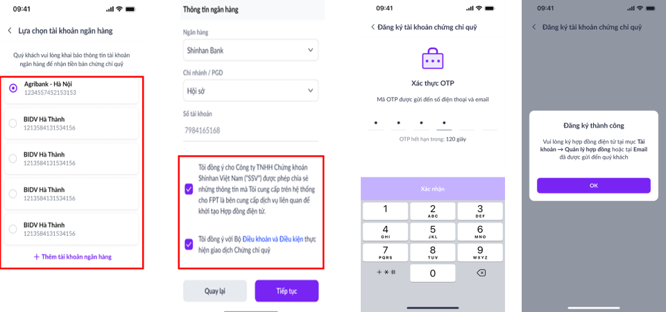 - Bước 4: Thực hiện đăng ký tài khoản thụ hưởng chứng chỉ quỹ mở.