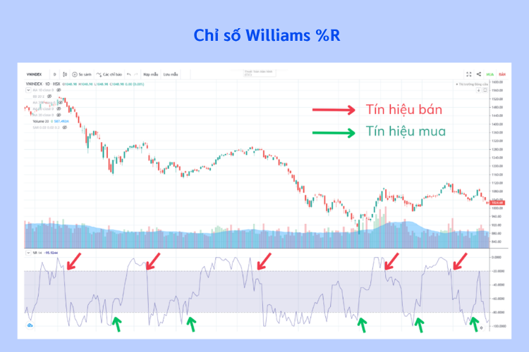 Khi đường William %R nằm trong khoảng từ -80 đến -100 thì giá đang ở mức quá bán.
