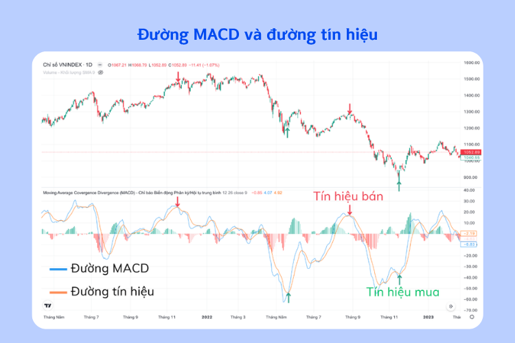 Đường tín hiệu là đường EMA(9) của đường MACD